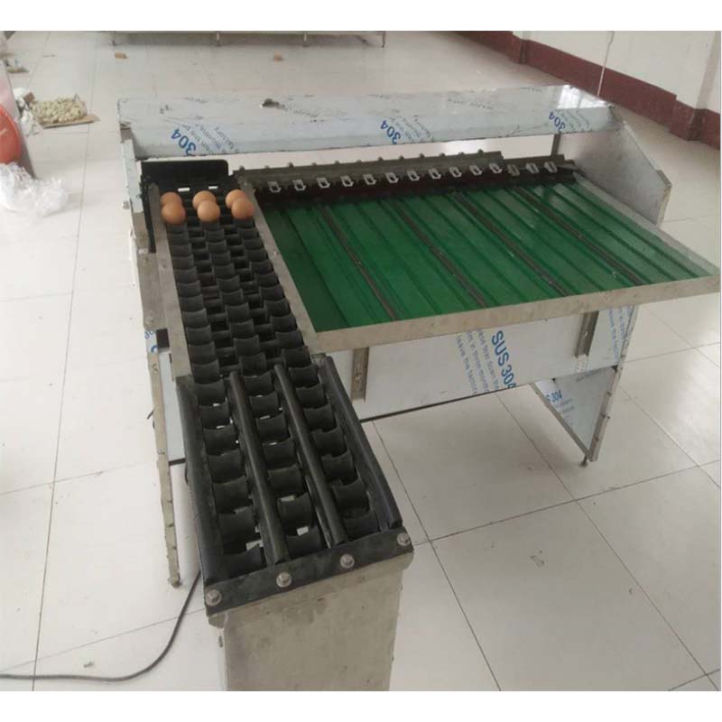 Egg Sorting Machine is used for sorting eggs into different grade by weight. The main constitutes are including eggs conveying belts, eggs groove, eggs grader and filtrating floor. This eggs sorting machine is suitable for various kinds of eggs like hen eggs, duck eggs, goose eggs or any other eggs. It's very fit for egg processing factory, poultry eggs farming market or egg producing company. We have different models with different capacity and materials to meet different demand of you.
