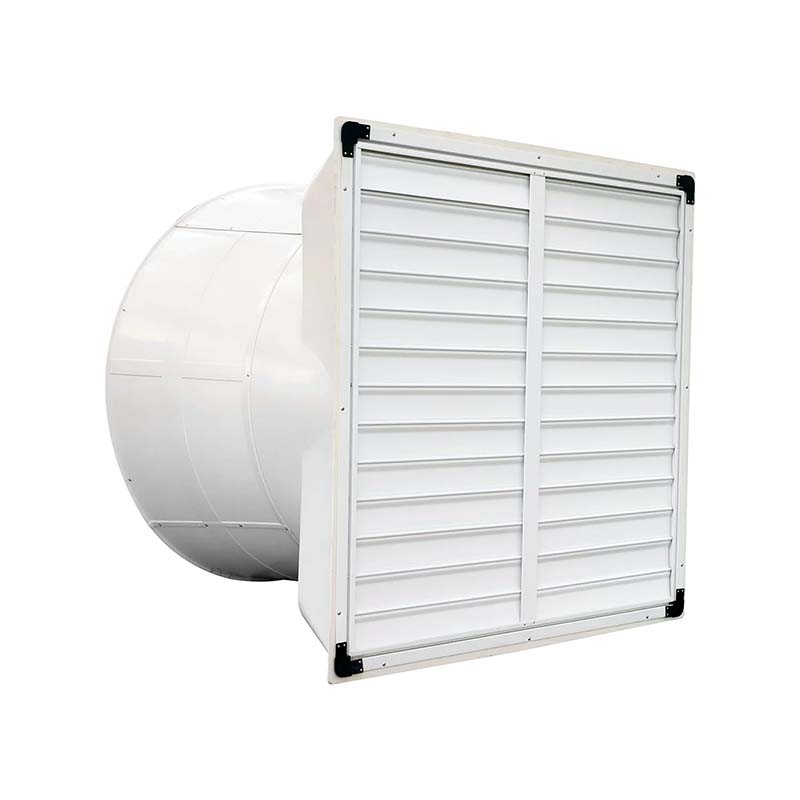 დაბალი ხმაურიანი სათბურის მინაბოჭკოვანი გამონაბოლქვი ვენტილატორი ლუვერით